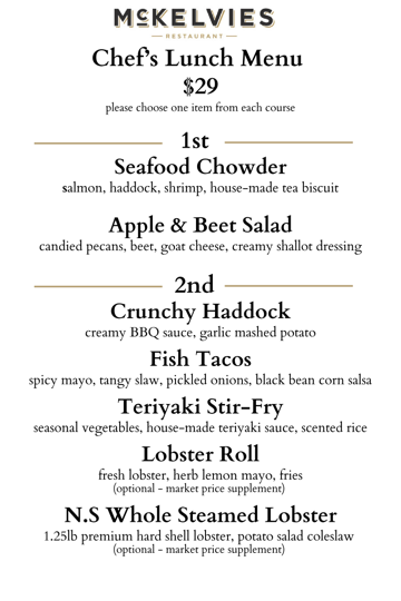 Please contact mckelviesrestaurant@mckelvies.com for booking inquiries